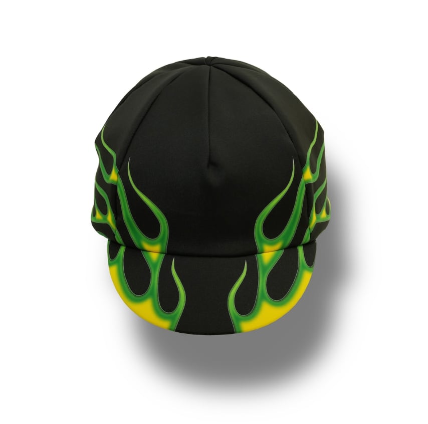 "The Cycling Cap col. Green Flame" アメリカンバイクのカスタムカルチャーではお馴染みのフレイムパターンを大胆にあしらいました。定番のレッド/イエローはよく見かけますが、敢えてグリーン/イエローのパターンにしました。 主張のあるデザインが目を惹きます。アメカジではなくテック系のウェアに合わせて格好良いデザインです。 The Cycling Capシリーズ 。 velo spica はかつてサイクルキャップ専門のメーカーとしてスタートしました。 このキャップは、velo spica ブランドの原点であり、最初期から作り続けている古き良きスタイルのサイクリングキャップをベースに、各部にアップデートが施されています。 生地は吸汗・速乾、UVカット機能を備えたポリエステル100%生地。テクスチャーはコットンライクなものに拘りました。更に背面のアジャスターはドローコードで幅広く調整可能。背面のホール自体の大きさを収縮出来るので、頭の形に合わせて、よりフィットします。 最小限の機能のみで無駄を削ぎ落とし、37gと非常に軽量、かつコンパクトに小さく畳む事が可能です。 バイクはもちろん、ヘルメットのインナーや、ランニング、ハイキングなど様々なフィールドでお使い頂けます。 また縫製・監修には元メッセンジャーが関わっており、その意味においてもリアルなプロダクトです。 グラフィックデザイン : AUGUSTUS PUB-rou 素材 : 帽体 ポリエステル 100% サイズ:フリー (≒54〜61cm) 重量 : 37g 仕立て : アンコンストラクチャー ツバ : Flex Visor ソフト つば長 : 59mm (Cycling) 価格 : ¥5,000 (税込) ※モニター環境により、実際の商品の色合いと多少異なってみえる場合があります。ご注意ください。 ※ 洗濯は中性洗剤での手洗いをお勧めしております。なお干す時は、軽く生地を伸ばし、帽子の形を整えてから、日陰で平干し、もしくは吊り干しして下さい。もし洗濯機を使用する場合は洗濯ネットをお使い下さい。生地は汗を吸った状態で放置しますと黄ばみや変色の原因となりますので適度な洗濯をお願い致します。 ※ フリップアップは背面のアジャスターをややしっかりとテンションがかかるように調整した方が上げ下げがし易くなります。 ※ ツバを丸めて小さく畳む事も可能です。素材の性質上、繰り返し畳む事でナイロン生地・メッシュ生地は柔らかくなっていきます。硬い状態が良い場合は、畳まずにお使い下さい。水洗いしてスチームアイロンをかける事で型崩れはある程度戻ります。 ※ 長時間高温の場所に放置しておくとツバの形が変形する恐れがあります。 保管する際は日陰の高温になりにくい場所でお願い致します。