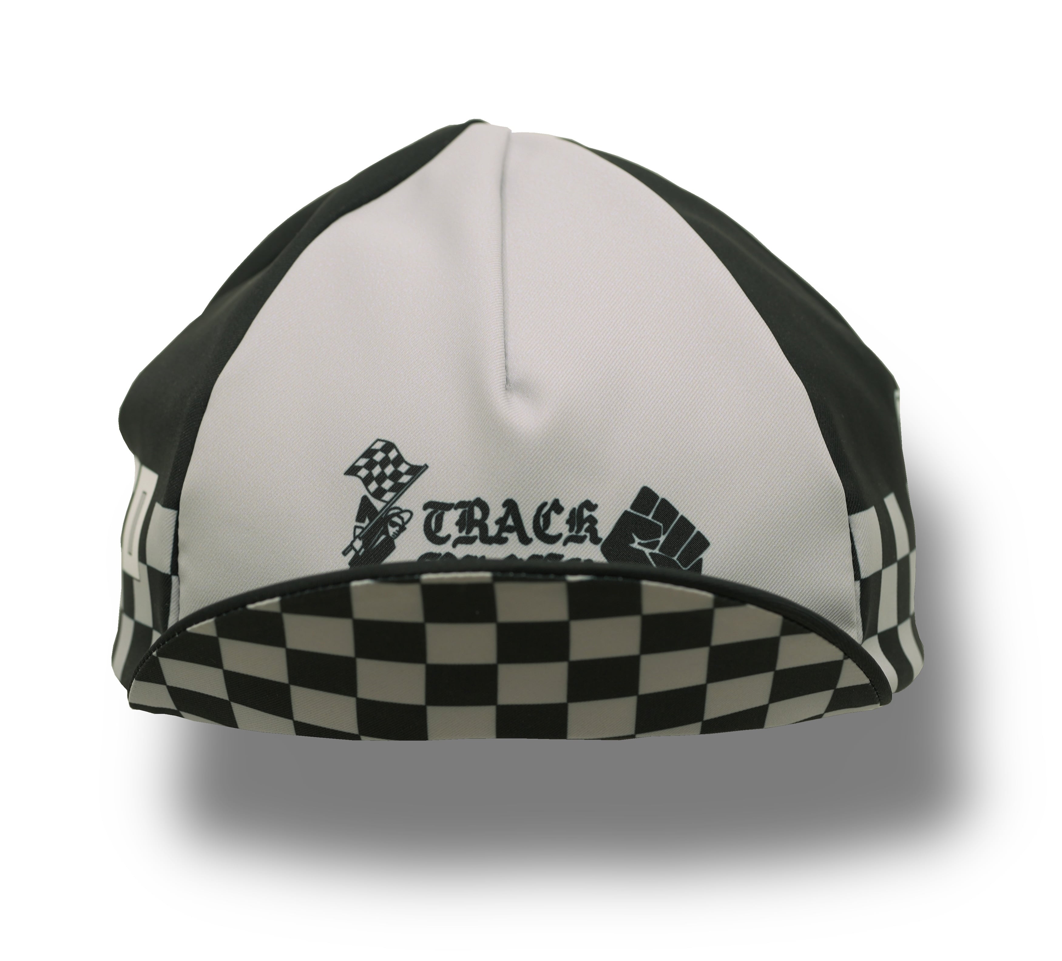TBU6のテーマカラーのメタリックグレーに合わせて、2トーン・チェッカー柄をサイクリングキャップのデザインに落とし込みました。