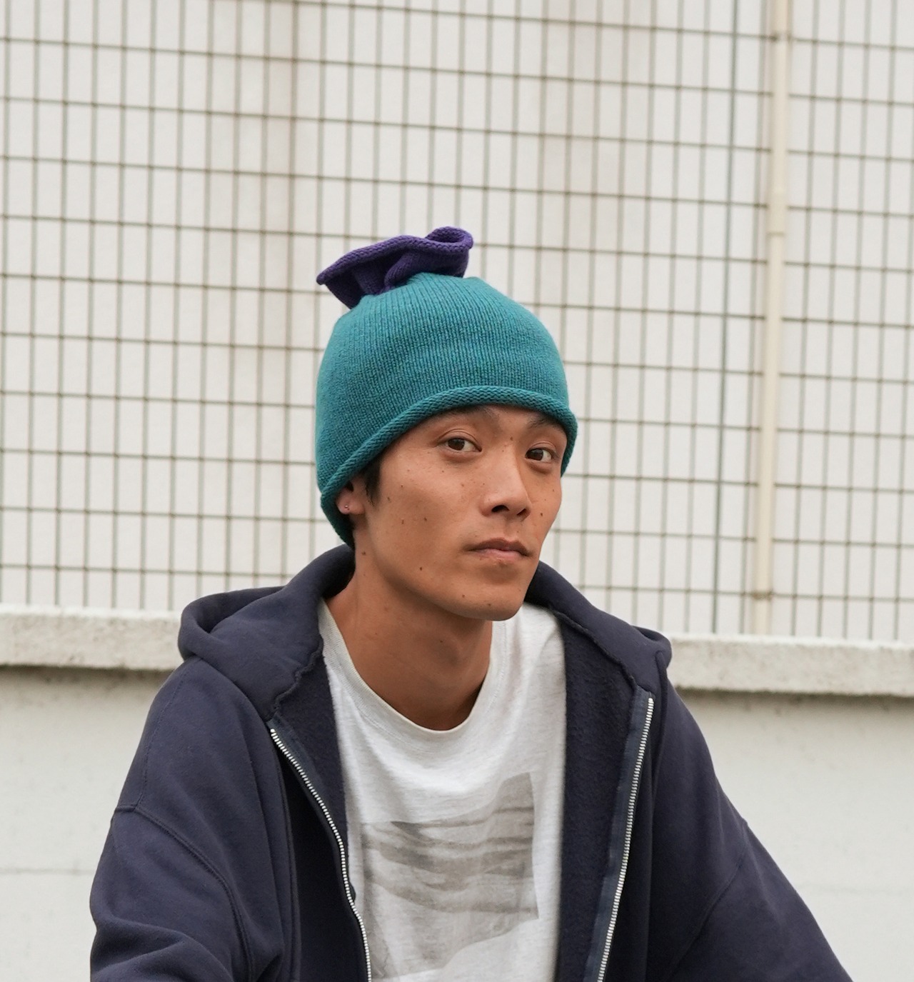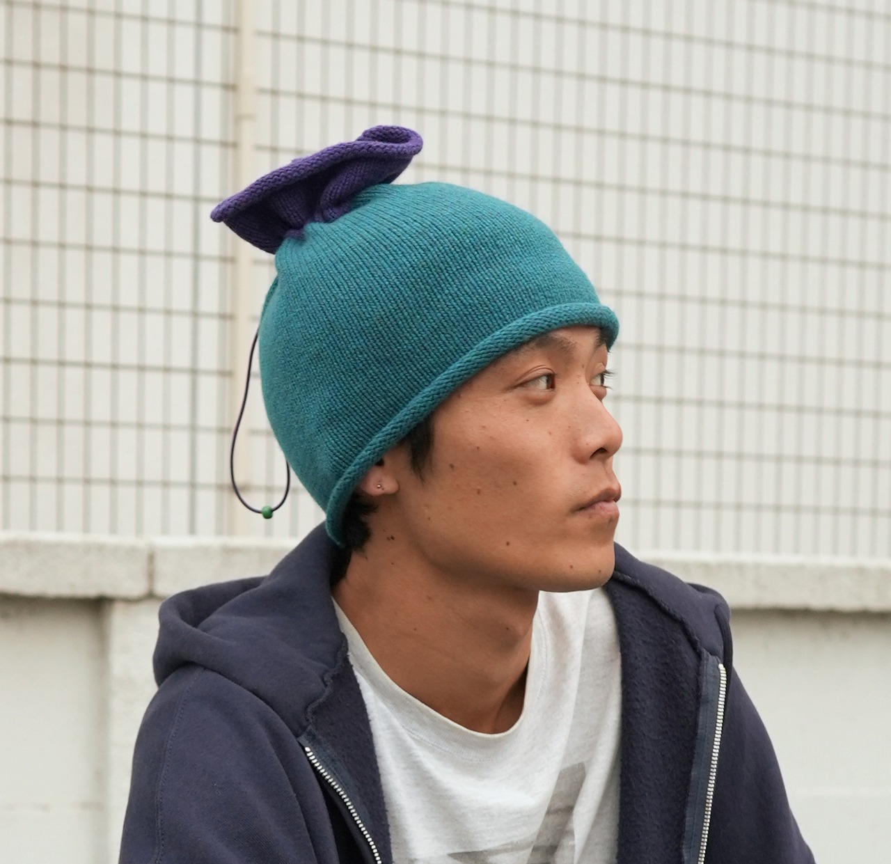 かぶり方を色々アレンジ出来るニットキャップです。