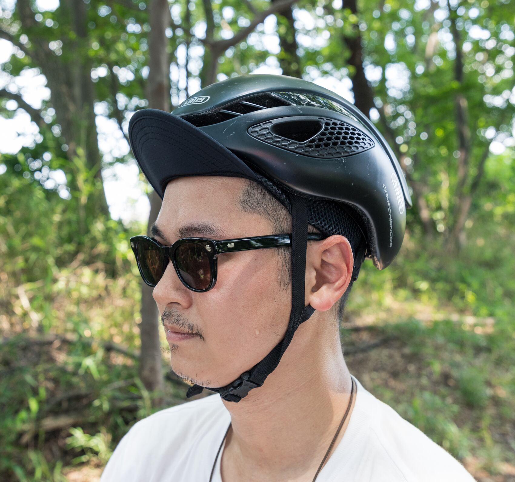 ヘルメット下でフィットするよう頭の形にぴったりと添う、サイクルキャップならではのフィット感は健在です。もちろんツバを上に跳ね上げて被ることも可能です。