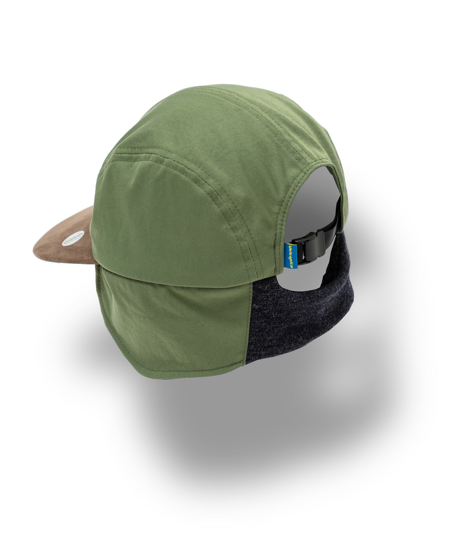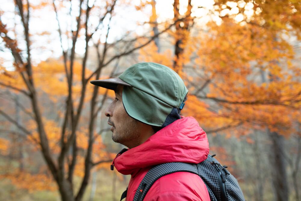 ボディデザインはレザーのツバとストレート4パネル。このコンビネーションはビンテージのフィッシングキャップからインスパイアされており、そこに今日的なアレンジを加えました。ミッドビルタイプのツバはヴィーガンレザー(フェイクレザー)、ボディは速乾性のあるタスランナイロン・ポリエステル生地を使用しています。様々なアウトドアシーンで幅広く使え、かつケアも簡単になりました。