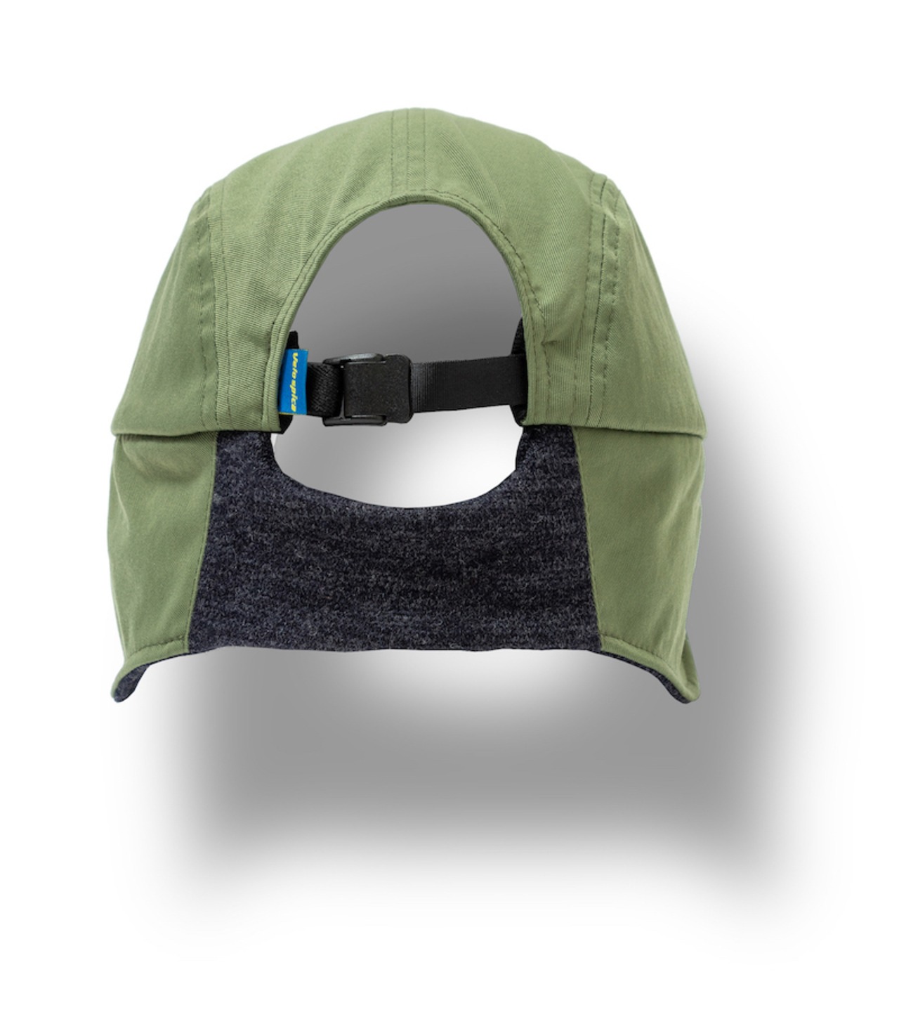 フラップ背面部分は表生地を省き、さらにリブが浅くなっています。こうすることで自転車で前傾姿勢になり顔を上げた時に首に干渉し難い設計になっています。